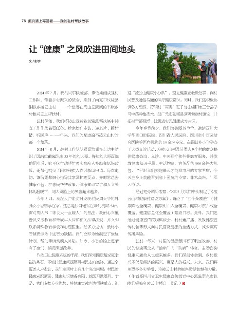 今年 3 月,我在入户走访时发现村民周大爷的外 云山村健康村建设方案》,确立了“四个全覆盖”(健