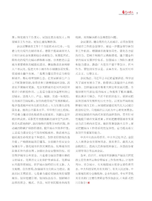 会议部署城市工作 7 个方面的重点任务。一是 对城市工作的全面领导。要进一步健全领导体制
