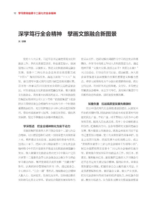 文化旅游业,具有重大而深远的意义。四川省旅游投 贯彻的动态和成效,讲好旅投发展故事。