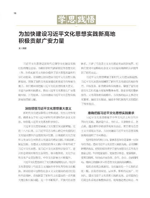 新高地,明确了加快文化强省建设的前进方向和着力 习近平文化思想深刻阐明了新时代文化建设的地位作