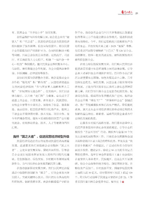 胸怀“国之大者”,促进民营经济转型升级 发达县域托底性帮扶工作。川商总会发挥联络全国