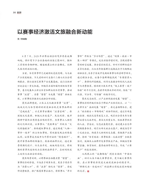 赛事经济的价值,不仅在于观赛本身,更在于将其作 情。在以赛事经济促进文旅深度融合的探索中,