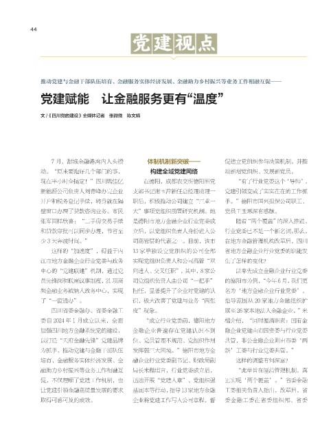 促,不仅理顺了党建工作机制,也 迅速开展“党建入章”、党组织强 正实现‘两个覆盖’。”省委金融