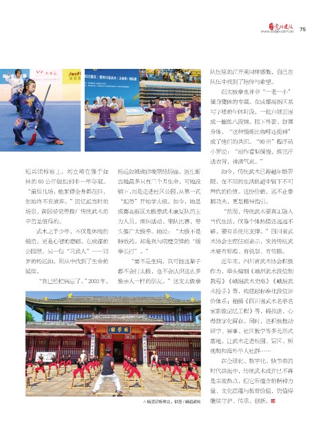 场景,黄国晏觉得推广传统武术的 成都高新区太极拳武术康复队的主 “然而,传统武术要真正融入