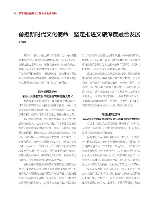 省委十二届七次全会深入贯彻落实党中央决策部 升。我们要深刻把握文旅融合发展大势和省委赋予的