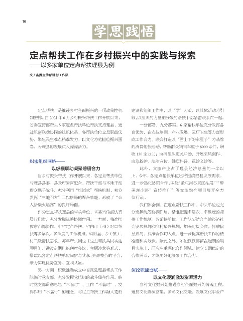 制安排。自 2021 年 6 月乡村振兴帮扶工作开展以来, 领,以组织的力量把分散的帮扶干部紧密联系在一起。