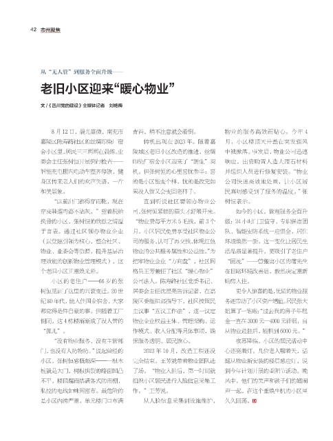物业、业委会等资源,提升基层治 物业的公共服务属性和公益性。”为 活品质显著提升,更吸引了老住户