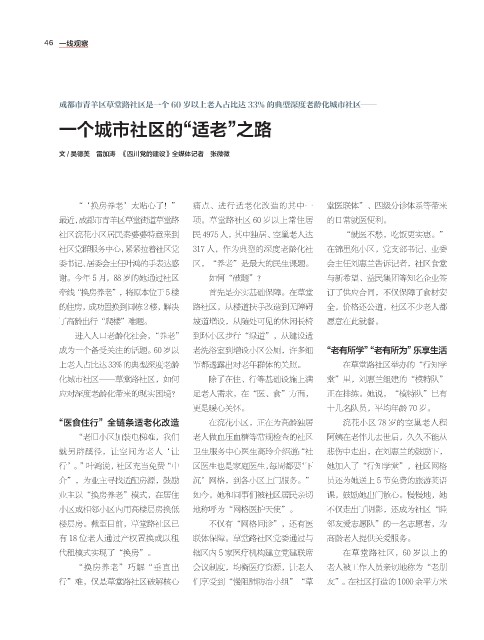 成都市青羊区草堂路社区是一个 60 岁以上老人占比达 33% 的典型深度老龄化城市社区——