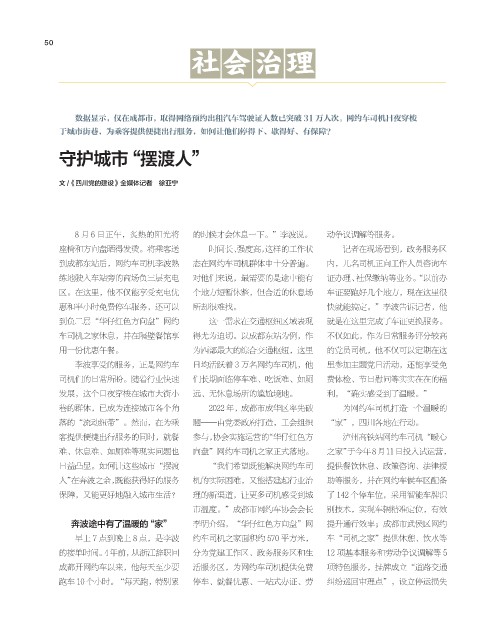 巷的群体,已成为连接城市各个角 2022 年,成都市成华区率先破 为网约车司机打造一个温暖的