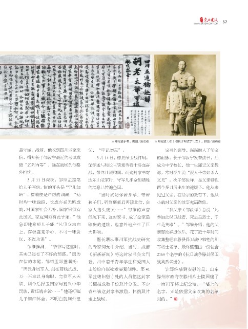 3 月 11 日深夜,邹绍孟提笔 达乐山老家时,守军几乎全部牺牲 父兄”。次子邹汝祥,是父亲牺牲