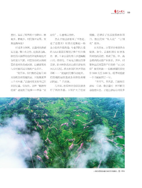 局之道:借山水之势,走旅游之路。 的 AAA 级景区规划让整个村庄焕 绽放,如今,云盖村拥有 44 家各