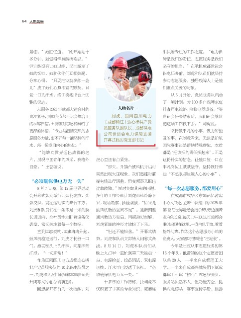 从服务 2023 年成都大运会时的 人物名片 排查用电线路、检修电器设备。“等