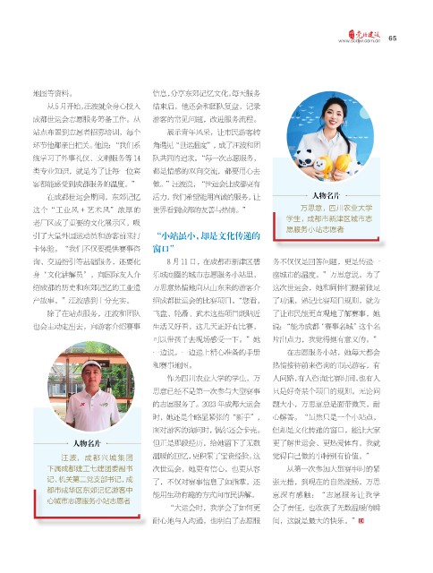 在成都世运会期间,东郊记忆 活力,我们希望能用真诚的服务,让 人物名片