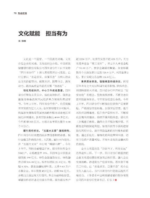 小微企业,本年投放 453 亿元,余额 906 亿元, 文化入脑入心,为四川省分行行稳致远提供不