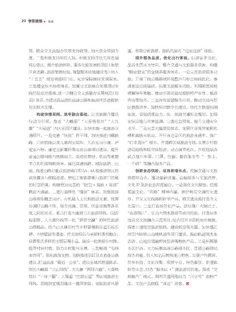 的时空距离,构建更加完善的“航空 + 高铁 + 高速” 文化 IP 及新业态深度融合。一是强化文化赋能。挖掘
