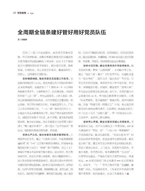 理、作用发挥机制。成都市郫都区将党员队伍建设作 动,通过定期协商、共建阵地,对2000余名流入党员同教