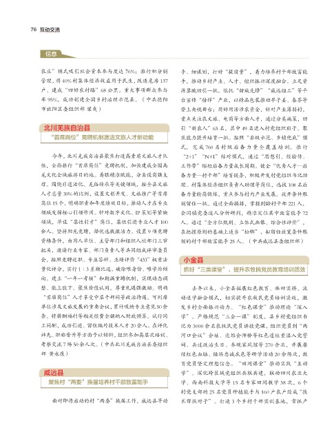 北川羌族自治县 引“新农人”63 名,其中 49 名进入村党组织班子。聚