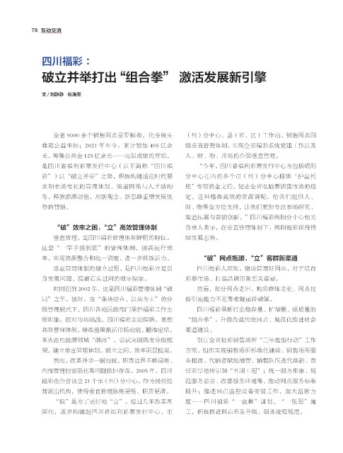 “破”效率之困,“立”高效管理体制 负责人表示,在垂直管理体制下,绵阳福彩保持持