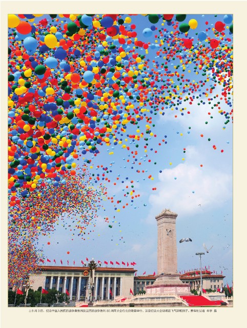 ● 公益广告 9 月 3 日,纪念中国人民抗日战争暨世界反法西斯战争胜利 80 周年大会在北京隆重举行。这是纪念大会现场放飞气球和鸽子。新华社记者 牟宇 摄