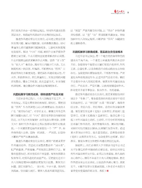 践成果转化为制度规范。要把握作风建设地区性、行 净化。各级党组织要加强党员、干部教育管理,严肃