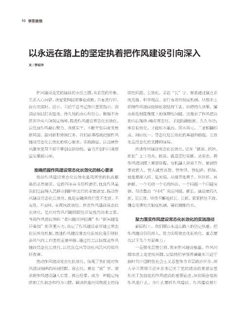 推动作风建设常态化长效化是巩固党的执政根 就是要深入抓、见实招,从细节处着手,环环抓、具