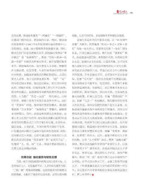 加强部门横向联动、数据纵向共享。例如,建设城 首要任务是补齐民生服务功能。以“15 分钟生