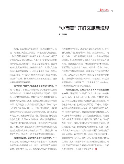 文旅新形态正在迅速崛起。“小而美”文旅新形态并非 院幽静,分层呈现传统文化成为“小空间大能量”的