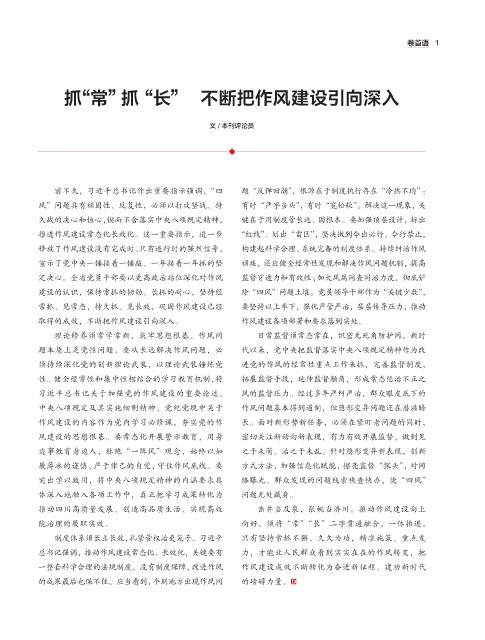 建设的认识,保持常抓的韧劲、长抓的耐心,坚持经 除“四风”问题土壤。党员领导干部作为“关键少数”,