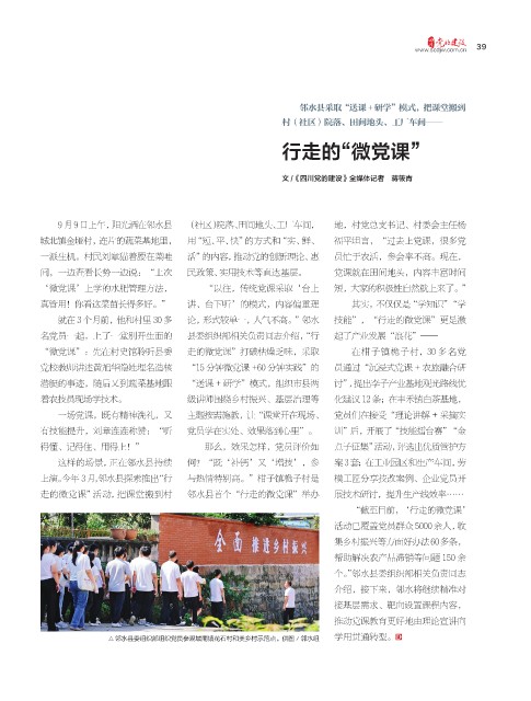 走的微党课”活动,把课堂搬到村 邻水县首个“行走的微党课”举办 展技术研讨,提升生产线效率……