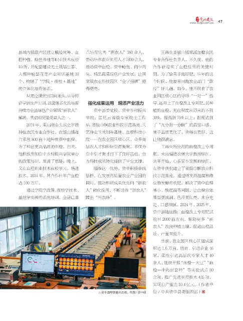 技术。2024 年,其合作社年产血橙 搭桥,在发展高质量农业产业园的 技示范基地。通过研发高温腐熟微