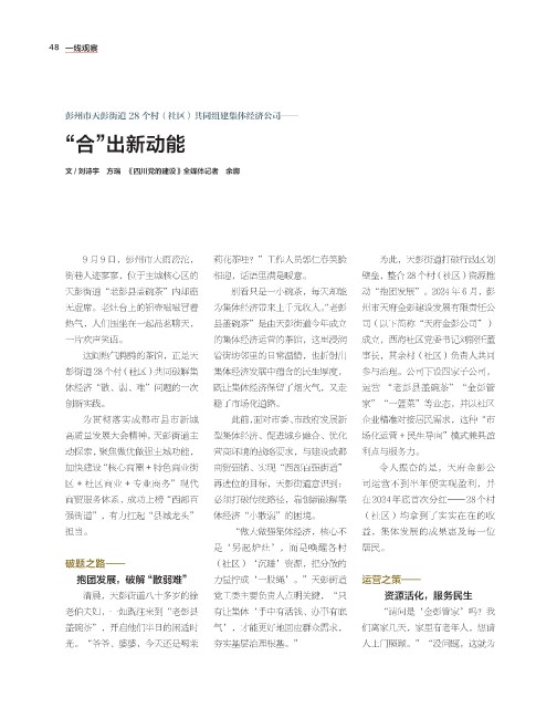 彭街道 28 个村(社区)共同破解集 集体经济发展中蕴含的民生厚度, 参与治理。公司下设四家子公司,