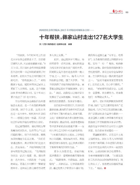 月 14 日,四川省社会科学院驻喜德 力托举孩子们走向更广阔的世界。 决学生困难;高中阶段则组织夏令