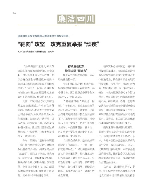 到相应惩处。这是四川基层通过领 主战场、一线督薄弱县,县(市、 提升重复举报攻坚治理质效,