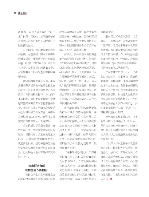 党内严重警告处分,责令辞职。 此,省纪委监委出台《四川省纪检 查处诬告行为 20 起,处理 19 人,