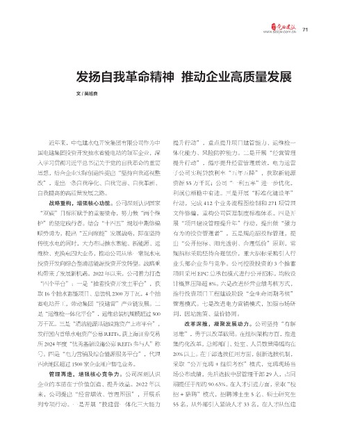 国电建集团投资开发抽水蓄能电站的领军企业,深 体化能力、风险防控能力。二是开展“经营管理