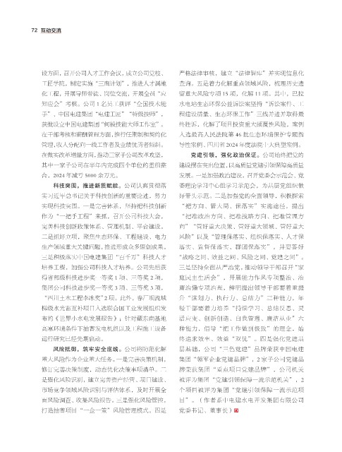 风险抵御,筑牢安全底线。公司将防范化解 层基础,公司“三色党建”品牌荣获中国电建