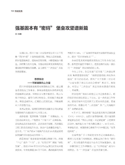 四川中烟党组高度重视思想政治工作,建立健 会,对坚定“二次创业”再出发的思想进行再统
