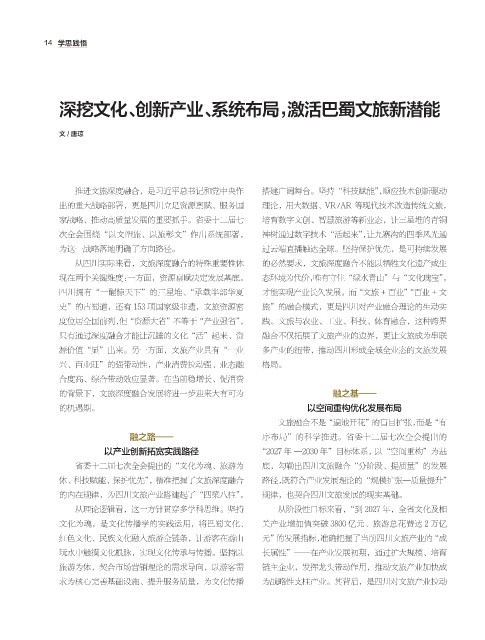 史”的古蜀道,还有 153 项国家级非遗,文旅资源密 旅”的融合模式,更是四川对产业融合理论的生动实