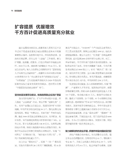 “蓉易就业”工作经验被国务院列为 2024 年推动高 等区域劳务合作 327 场,年均供岗约 234 万个次。
