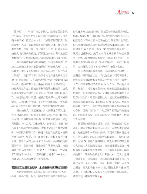 教育资源,加快工学一体化建设,引进 130 名企业高 计建成 2136 个站点,形成“15 分钟就业服务圈”。