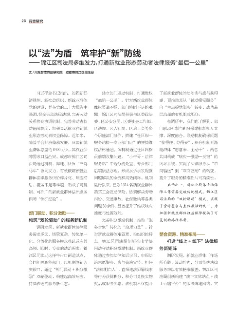 突破口,通过“部门联动 + 积分激 “法律明白人”、直报违法犯罪线索 服务难以有效精准覆盖。锦江区司