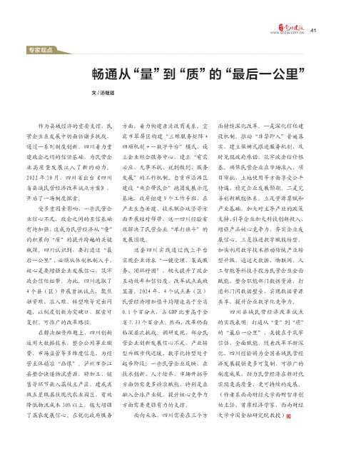 费、市场监管等多维度信息,为经 型升级步伐迟缓,数字化转型处于 化,四川经验将为全国县域民营经
