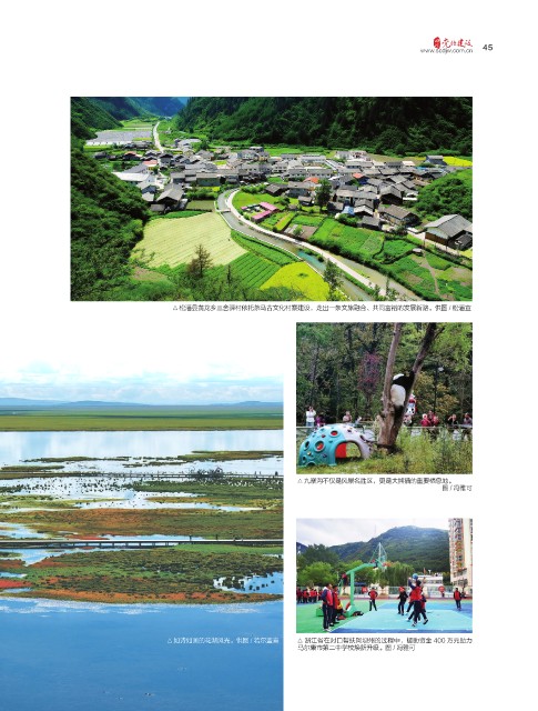 45 45 c o j w. c n m . d w w www.scdjw.com.cn w. c s 松潘县黄龙乡三舍驿村依托茶马古文化村寨建设,走出一条文旅融合、共同富裕的发展新路。供图 / 松潘宣 九寨沟不仅是风景名胜区,更是大熊猫的重要栖息地。 图 / 冯雅可 如诗如画的花湖风光。供图 / 若尔盖宣 浙江省在对口帮扶阿坝州的过程中,援助资金 400 万元助力 马尔康市第二中学校焕新升级。图 / 冯雅可
