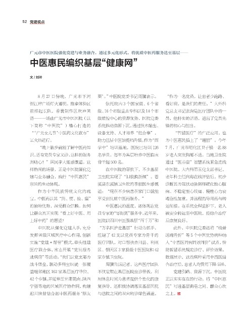 盖毗邻地区 162 家基层医疗单位、 不仅定期在基层医院坐诊带教,利 党建引路、资源下沉,中医院