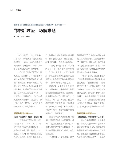 委)书记、机关基层党组织书记或 解,正是雅安市“揭榜挂帅”机制 色调解链”2025 年为企业提供诉讼