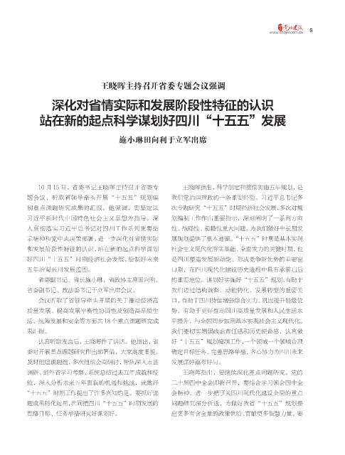 10 月 15 日,省委书记王晓晖主持召开省委专 王晓晖指出,科学制定和接续实施五年规划,是