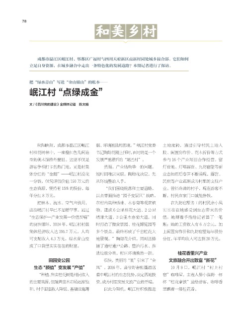 这在岷江村早已不是稀罕事。通过 物,建成 6 公里桂花大道、2 公里 实实在在地感受到生态带来的价