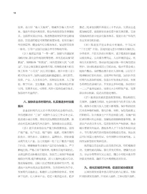 进良田良种良机良法集成增效。坚持农林牧渔并举, 九、优化区域经济布局,促进区域协调发展