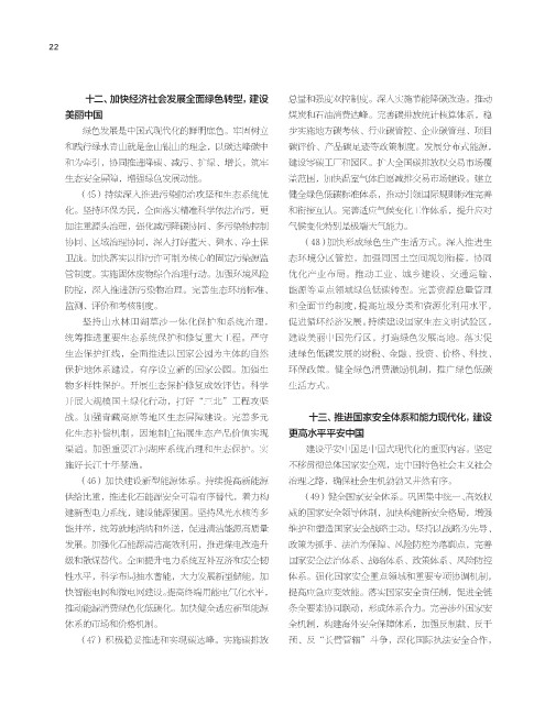 (46)加快建设新型能源体系。持续提高新能源 治理之路,确保社会生机勃勃又井然有序。
