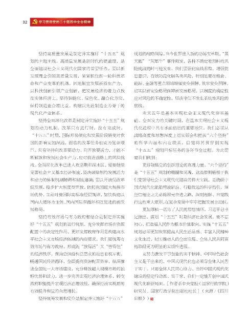 坚持高质量发展是制定并实施好“十五五”规 规划的战略保障。当今世界进入新的动荡变革期,“黑